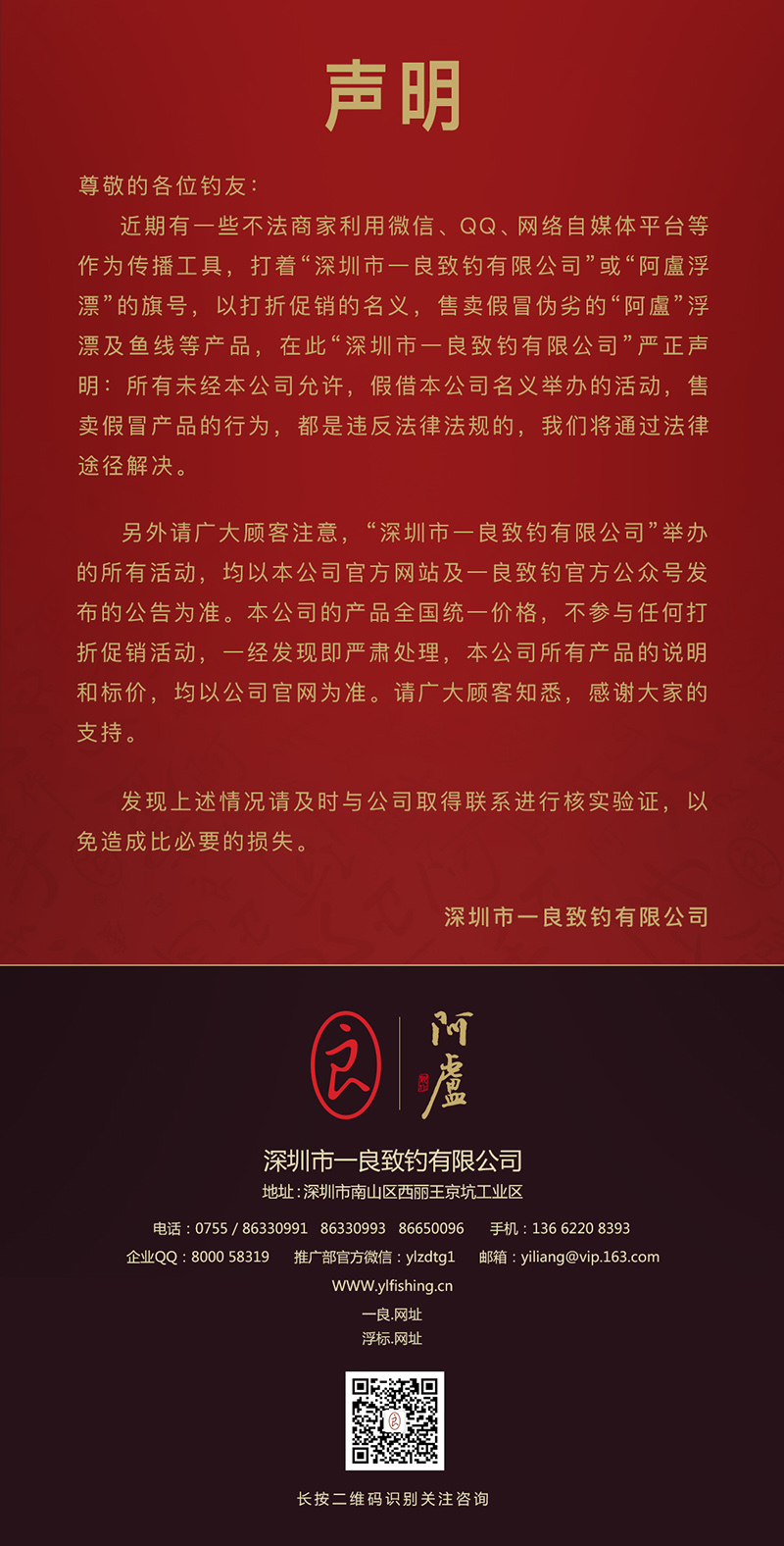 深圳市一良致釣有限公司關(guān)于維護(hù)市場(chǎng)秩序聲明