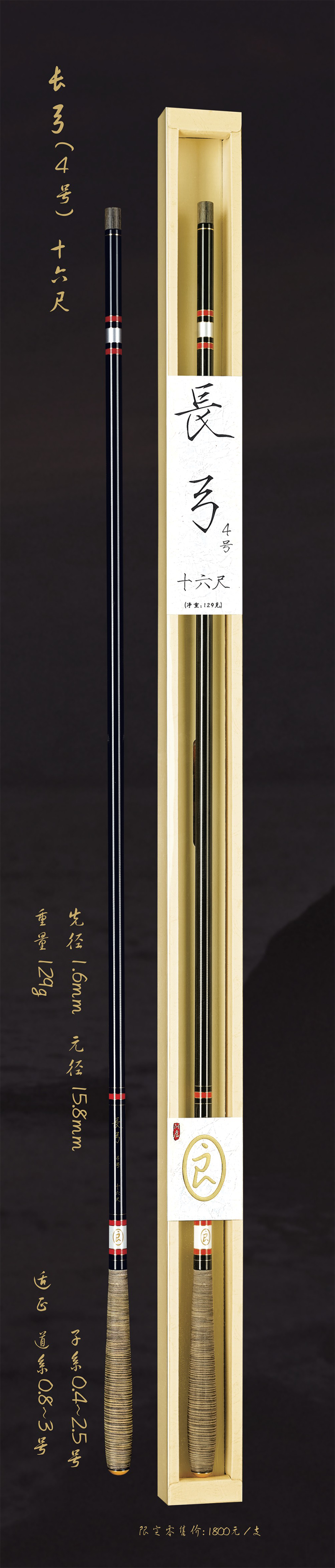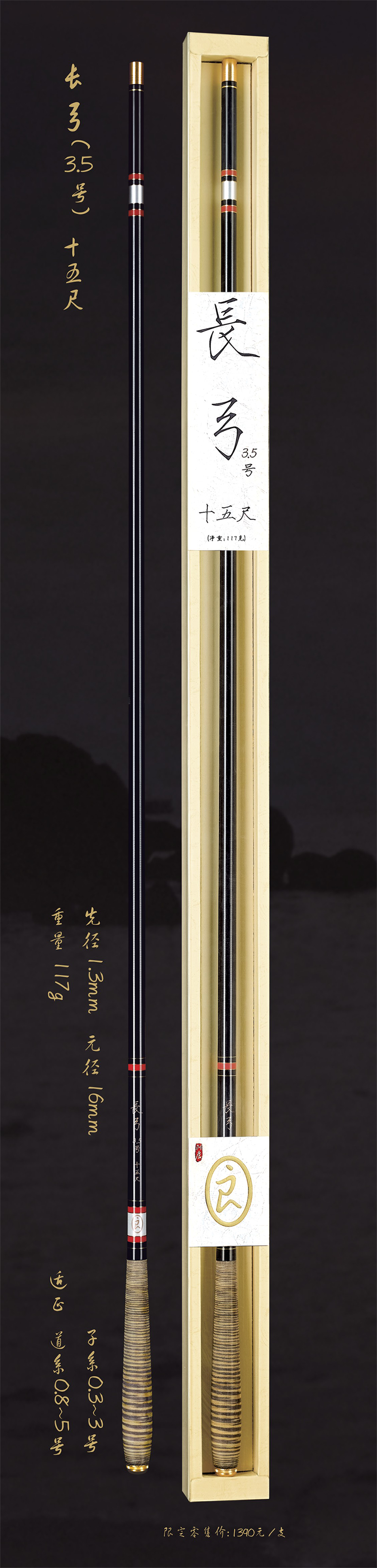 深圳市一良致釣有限公司經過專業(yè)研發(fā),反復調試現(xiàn)推出長弓3.5號十五尺,長弓3.5號十八尺,長弓4號十六尺三款新品釣竿。
